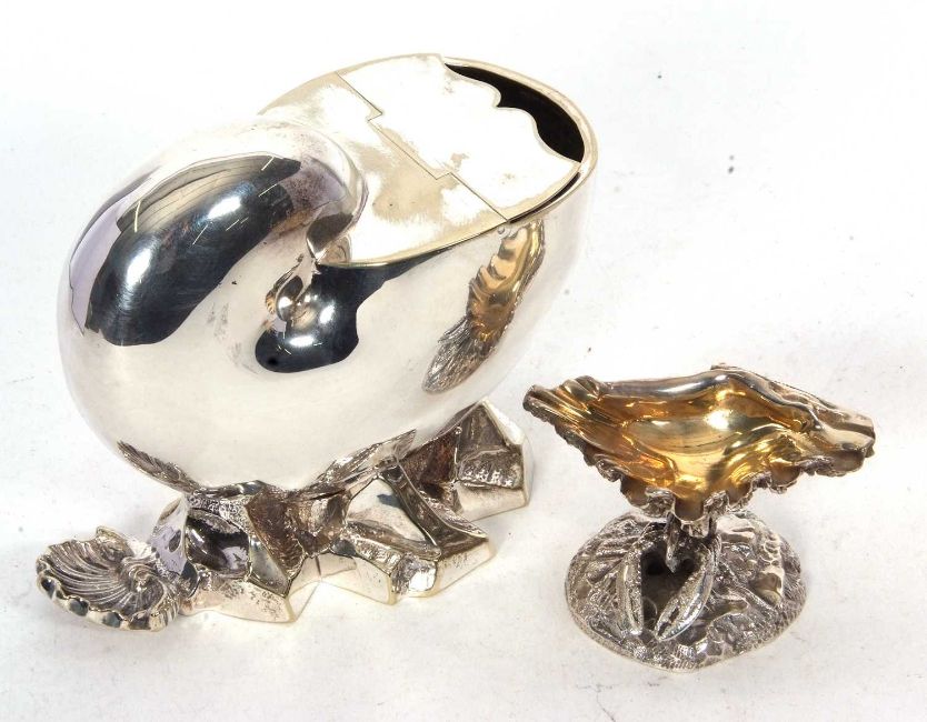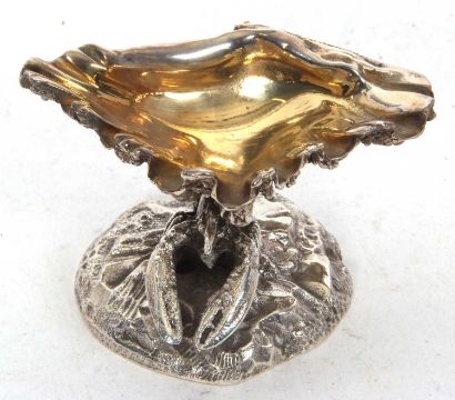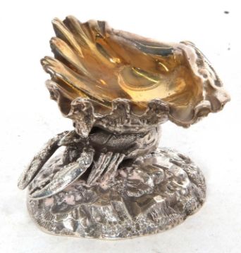 A Victorian Nautilus silver plate spoon warmer, circa 1850 together with an unusual plated salt modelled with a lobster supporting a clam shell (2)
