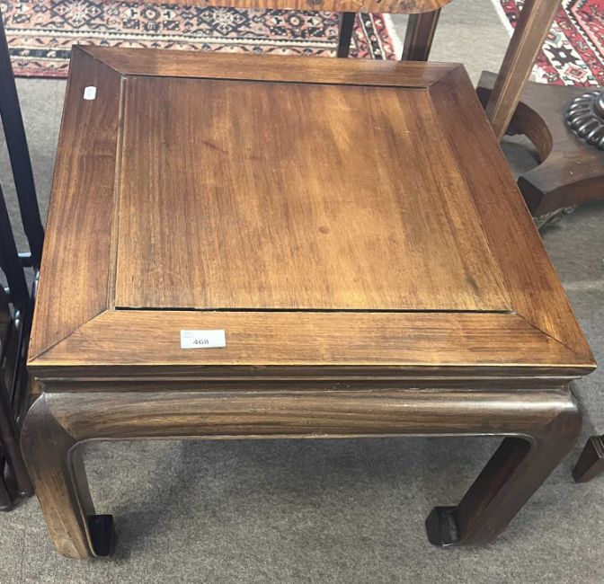 Contemporary Chinese hardwood lamp table of square form set on inswept legs