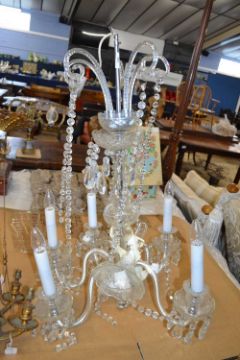 A 20th Century crystal glass chandelier with five scrolled branches, 60cm wide, 85cm high