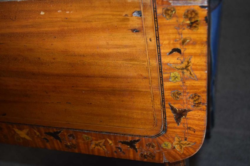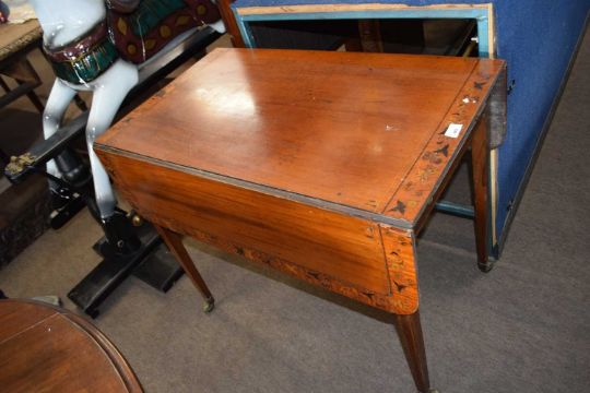 Georgian inlaid satin wood Pembroke table, the top inlaid with a floral border raised on tapering legs with brass end caps and casters, 83cm wide