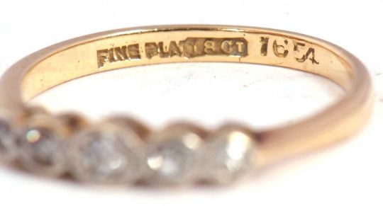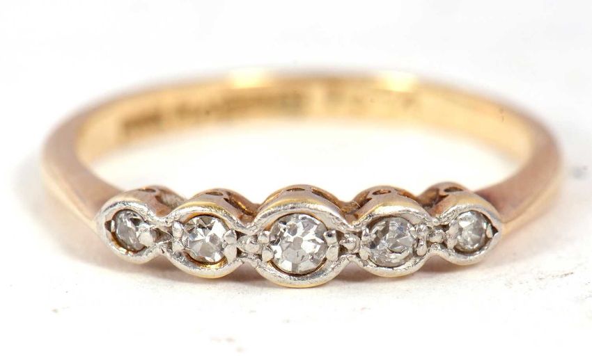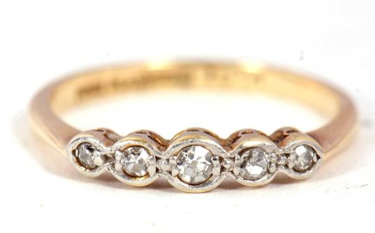 An 18ct gold and five diamond ring, circa 1920