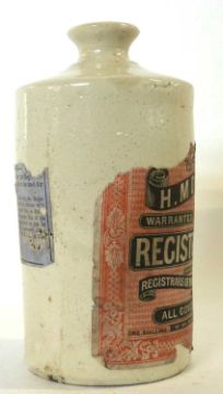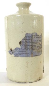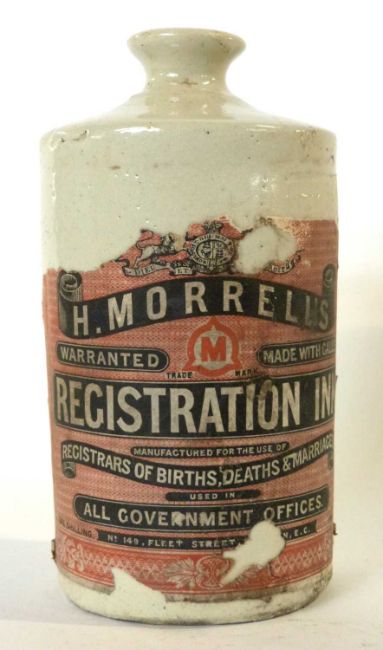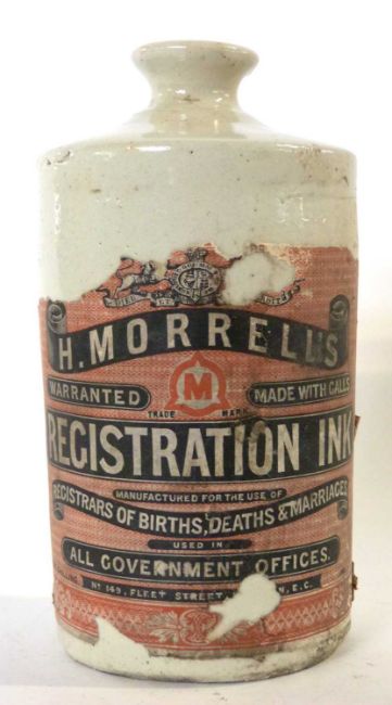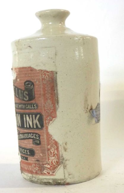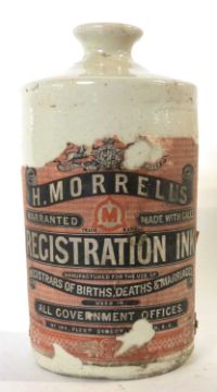 Interesting Victorian stoneware ink bottle with original label for Morrells stationery suppliers, special ink which could not be erased was used for birth, marriages and deaths