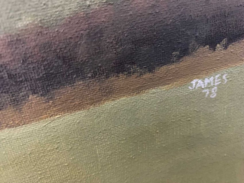 British School, 20th century, Landscape view over woodland and large clouded skyline, bears signature 'James' and dated '78, oil on canvas, 122x123cm, unframed.