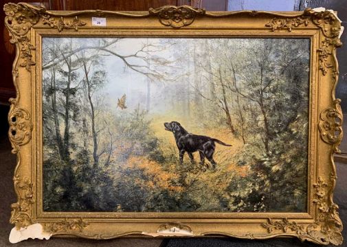 Henry Wilkinson (British,1921-2011), Black lab and Snipe, oil on canvas, signed, 49x74cm, framed.