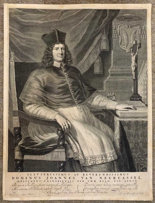 Jan Van Munnickhuysen after Willem Van Ingen (1651-1708), Portrait of Joannes Van Neercassel, engraving, circa 1664-1721, trimmed and laid on card, 33x43cm, unframed