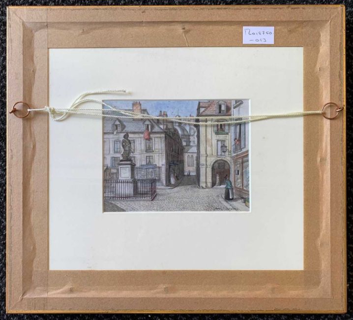 John S.Goodall RBA RI (British,1908-1996), Market scene with another street on verso, pencil and watercolour, signed, 13.5x18cm, framed and glazed.