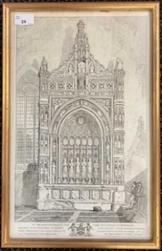 John Sell Cotman (1782-1842), Monument of Thomas Lord Morley in the church at Hingham, etching, 1817, 44.5x28cm, framed and glazed