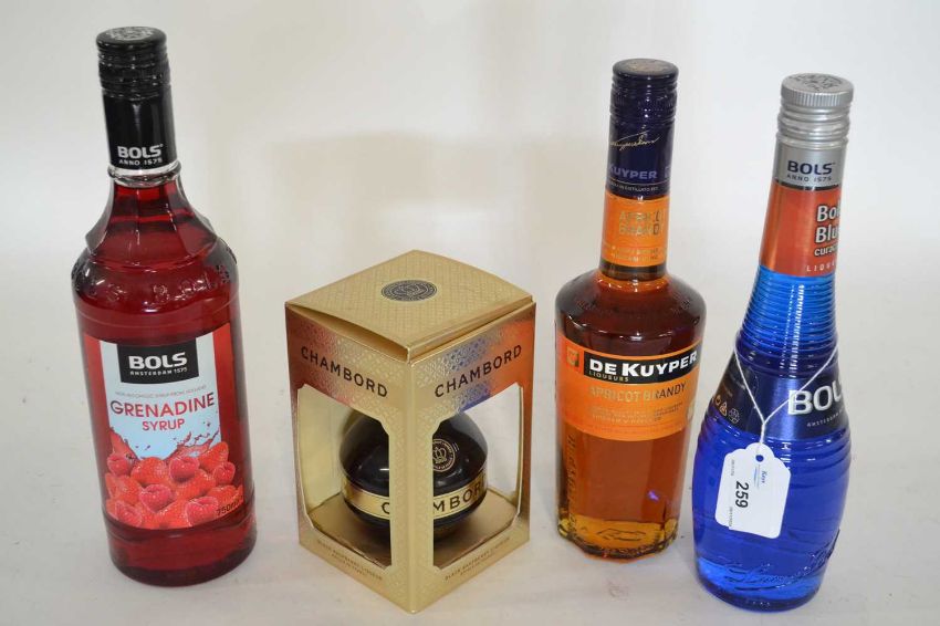 Chambord 200ml, Bols Blue Curaco 500ml, De Kuyoer Apricot Brandy 50cl and Bols Grenadine 750ml (4)