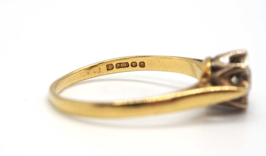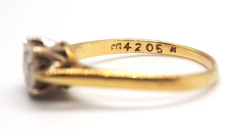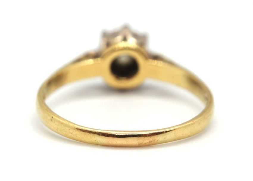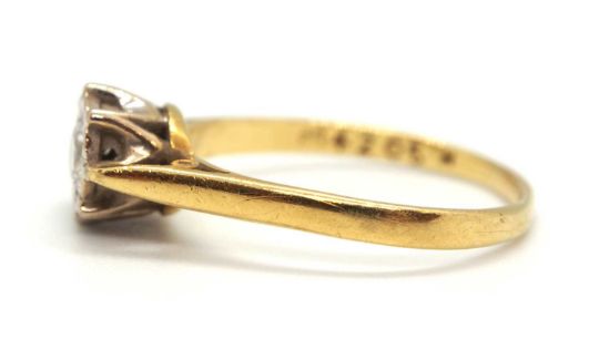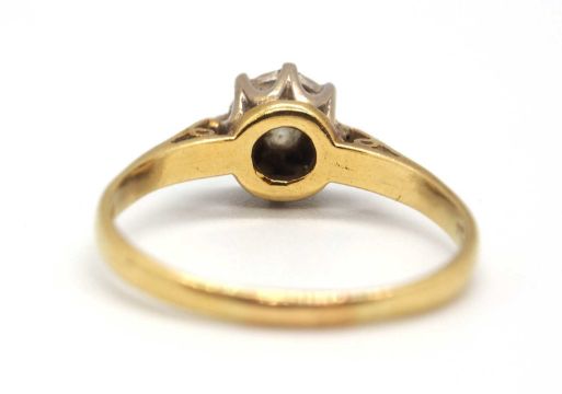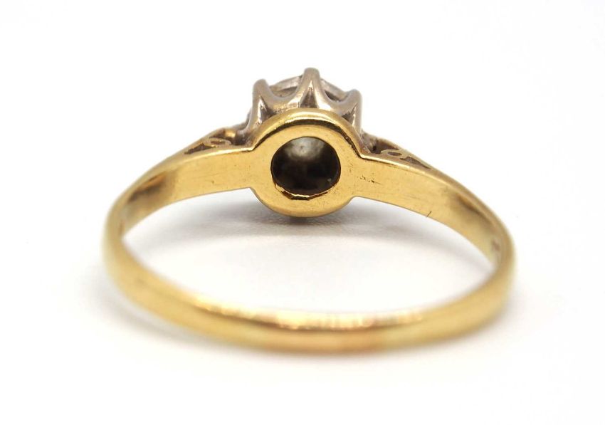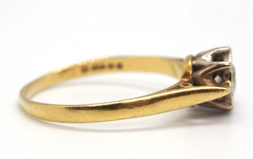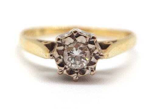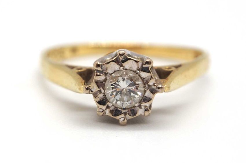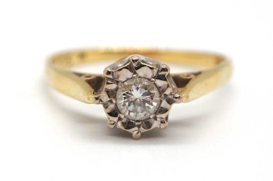 An 18ct diamond ring, the illusion set round brilliant cut diamond set in white gold, with a plain band of yellow gold hallmarked London 1970, size N, 2.8g