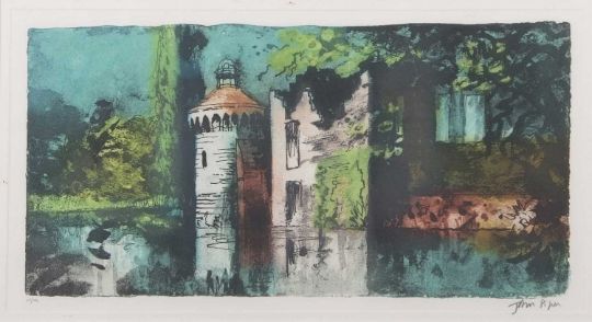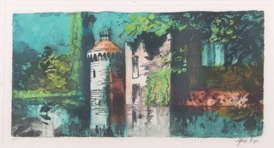 John Piper (1903-1992), Scotney Castle, limited edition etching with aquatint, numbered 15/50 and signed in pencil to plate margin, 23x42m, framed and glazed
