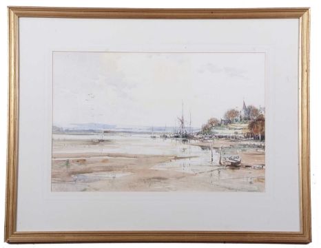 John Sutton (British, b.1935), inscribed on backboard 'Autumn Day Piddinghoe Sussex', watercolour, signed, 34x52cm, framed and glazed