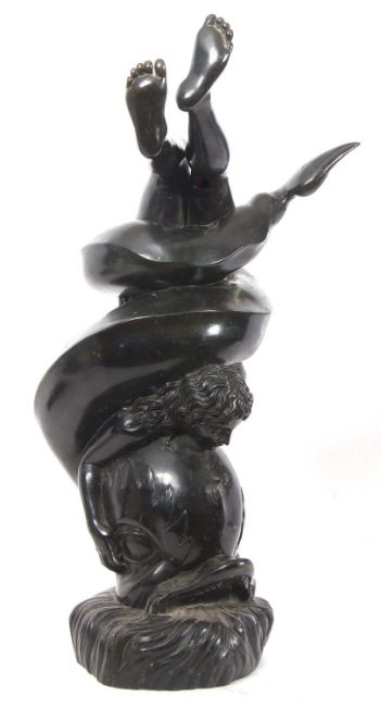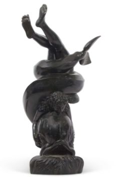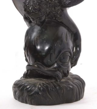 Italian hollow bronze model of a girl astride a dolphin in Art Nouveau style, signed Sab De Angelis & Fils - Naples 1908, 60cm high