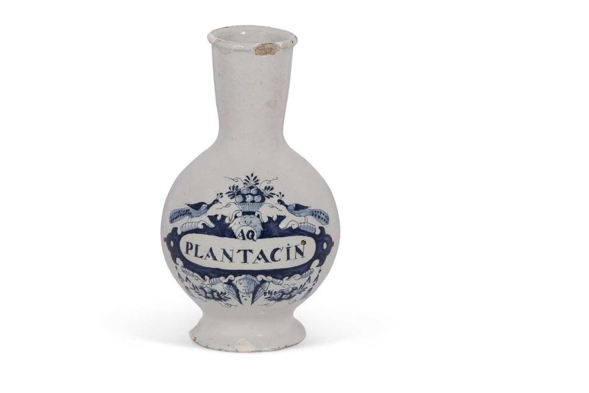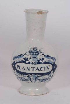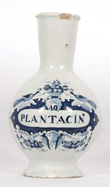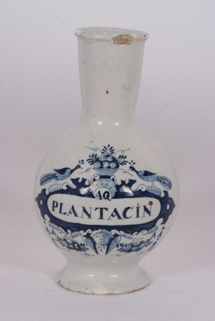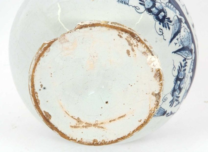 An 18th /19th Century Delft jar probably Dutch with central cartouche in blue and white