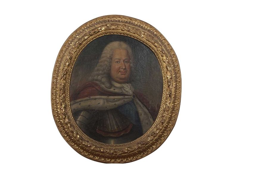 Circle of Jean Baptiste van Loo: Portrait of King Stanislaw I, King of Poland and Duc de Lorraine (1677-1766), French 18th century oval oil on canvas in contemporary gilt frame 70x57cms. King Stanislaw I was twice King of Poland and Duc de Lorraine in later life where he was instrumental in the development of Nancy as the provincial capital. His portrait was painted by French court painters including Jean-Baptiste Van Loo (1684-1745) and Antoine Pesne (1683-1757) and his daughter married Louis XV reigning as Queen of France 1725-1768. Provenance; purchased in the early 20th century from a Chateau near Nancy and thence by family descent.