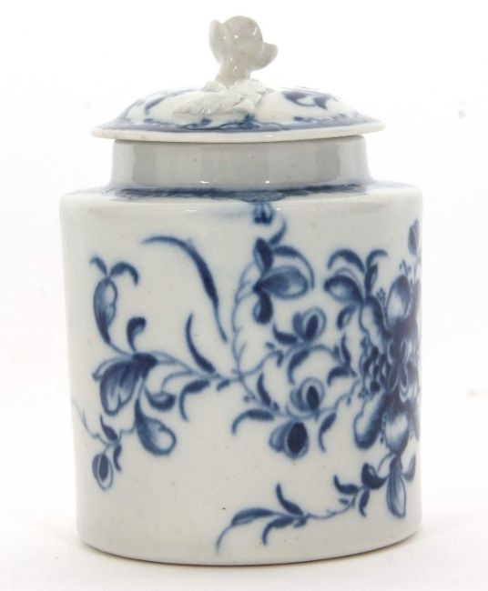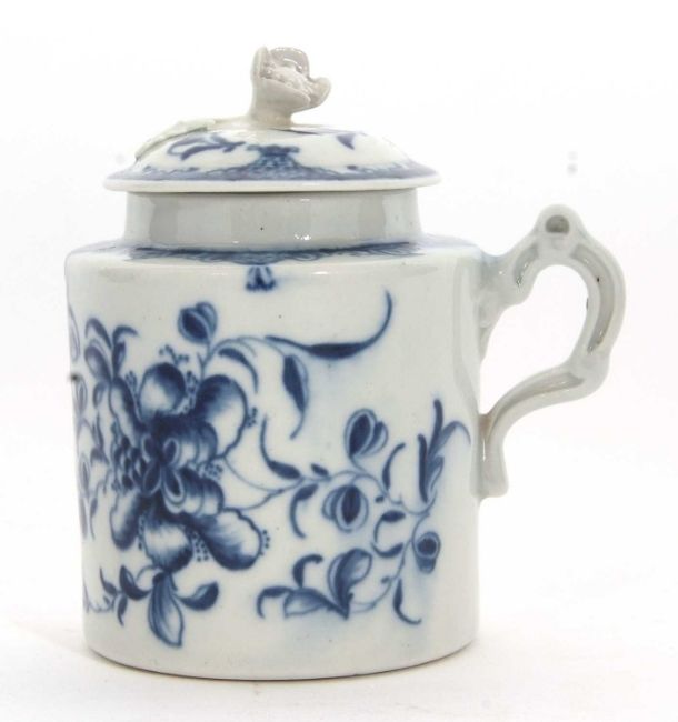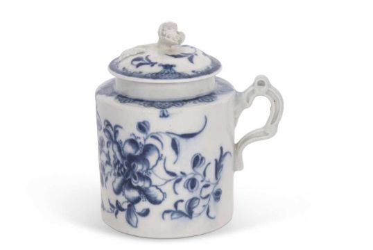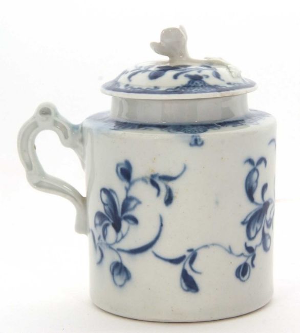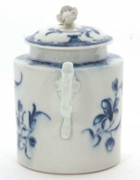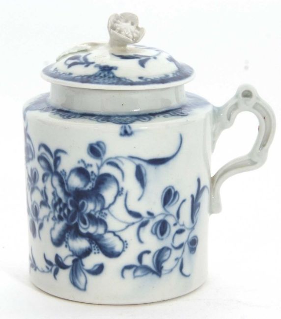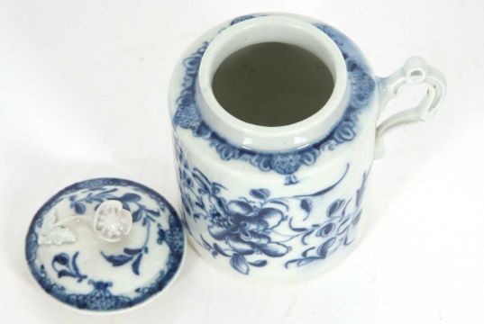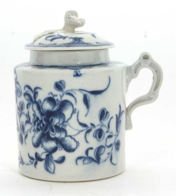 An 18th Century Worcester mustard pot and cover with floral design