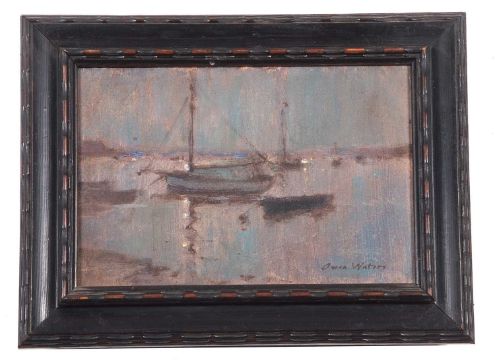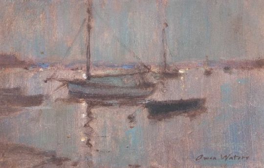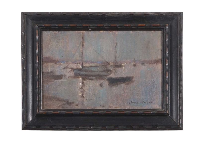 Owen Waters (1916-2004), Harbour view, oil on board, signed, 22x14.5cm, framed