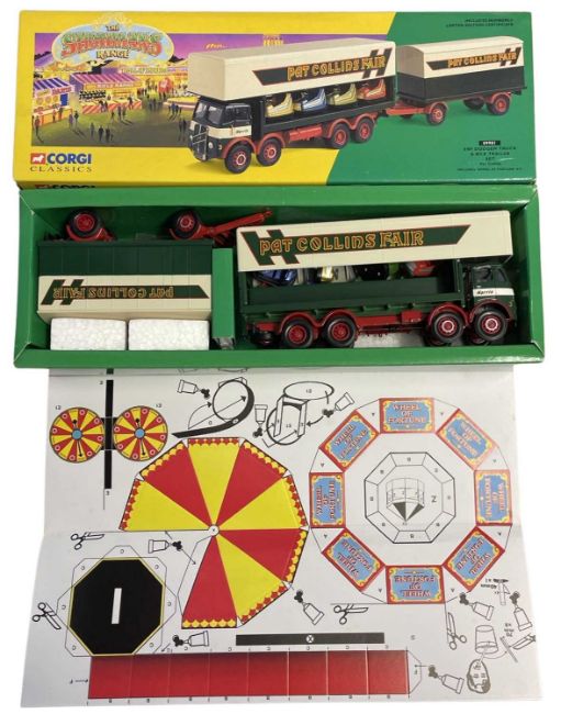 A boxed Corgi 09901 ERF Dodgem Truck and box Trailer Set, Pat Collins with 'Wheel of Fortune' Kit