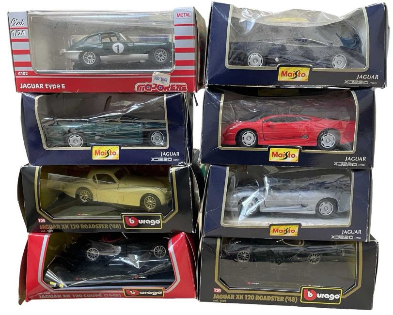 A collection of 8 various boxed 1:24 scale model cars, to include Bburago, Maisto and Majorette