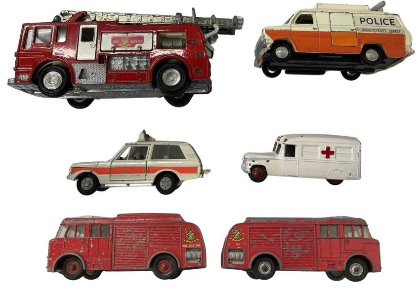 Six die-cast Dinky Emergency Services vehicles