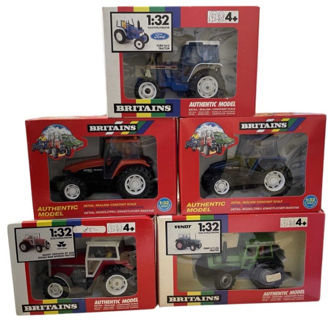 Five boxed Britains 1:32 scale tractor models, to include: