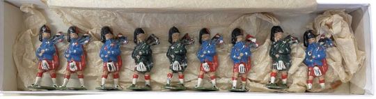 A collection of vintage, unmarked die-cast Highland Soldiers.