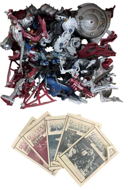 A collection of Zoids figures and some instruction manuals