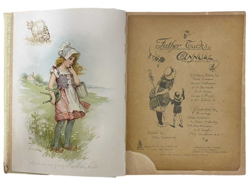 VINTAGE CHILDREN'S BOOKS: 7 Titles: JOEL CHANDLER HARRIS: UNCLE REMUS AND BRER RABBIT, Edinburgh, W & R Chambers, c early 1900s; JULIA S E RAE (Ed): THE SWISS FAMILY ROBINSON, London, Trischler and Company, 1891; CONSTANCE BARNICOAT: THE ANIMALS AT THE ZOO, London, Stead's Publishing House, ND; MABEL MACKINTOSH (Ed): ALL PLAY, London, Joan F Shaw; GEORGE BALDRY, LILIAS RIDER HAGGARD (Ed), EDWARD SEAGO (Illus): THE RABBIT SKIN CAP, London, Collins, 1950 (New Edition); D S BATLEY: THE TAMING OF AMBO, London, Church Missionary Society, 1923; FATHER TUCK'S ANNUAL 1904 (for 1905) (7)