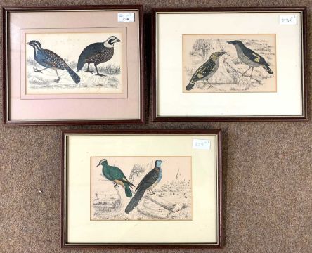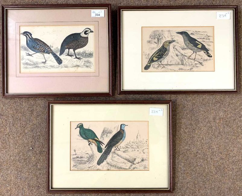 Trio of circa 19th century hand coloured ornithological engravings, framed and glazed (3)