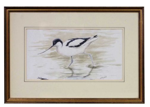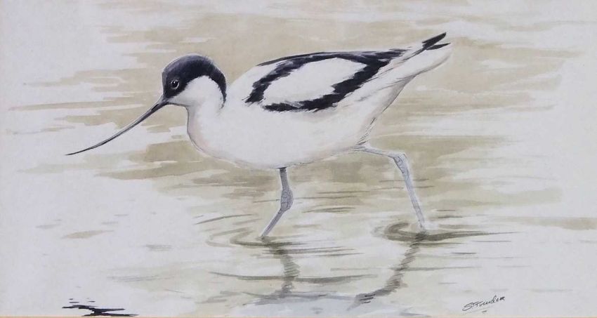 Simon Trinder (British, 20th/21st century), Wading Avocet, pencil and watercolour, signed, 20x31cm, framed and glazed