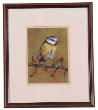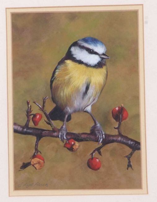 Sarah Pyefinch (British, 20th/ 21st century), Bluetit, gouache, signed,12x17cm, framed and glazed