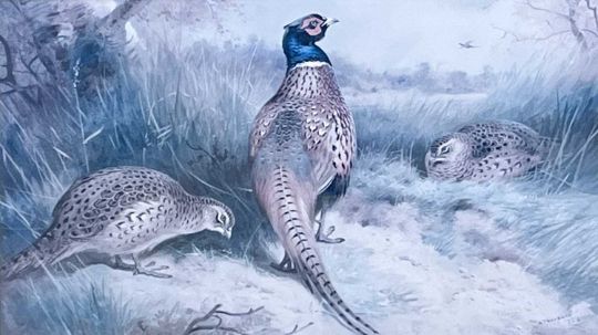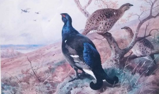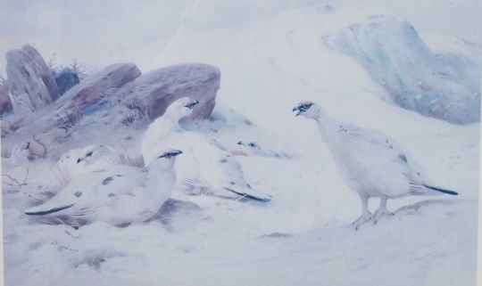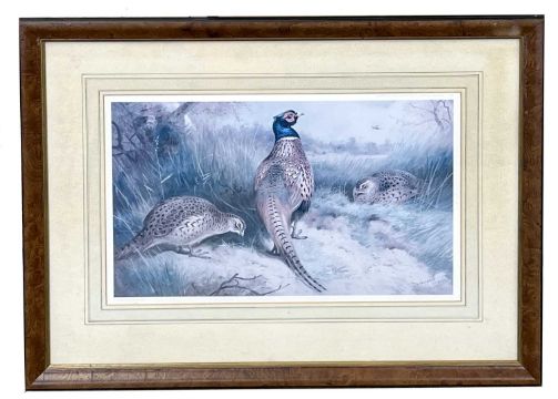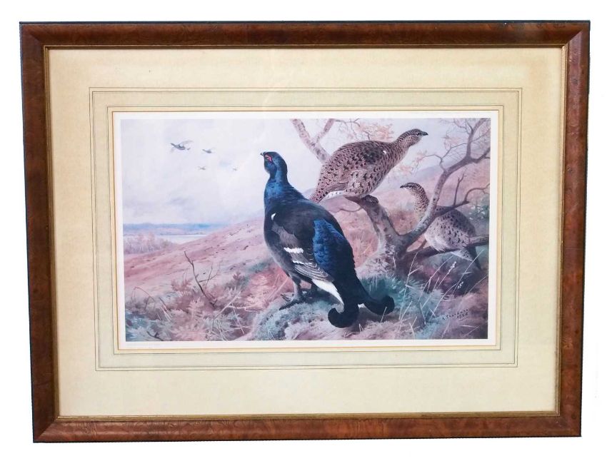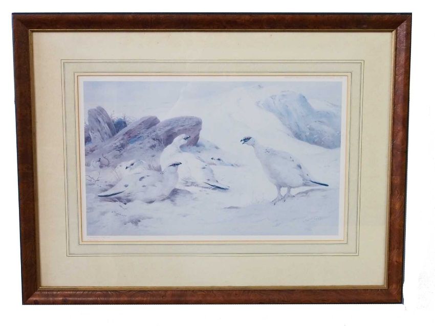 Archibald Thorburn (1860-1935), Set of four limited edition prints: 'Winter Ptarmigan', 'A pair of Black Grouse' , 'A English Pheasant and Grouse', and 'A Woodcock', numbered 254 of 400 copies in pencil, framed and glazed (4)