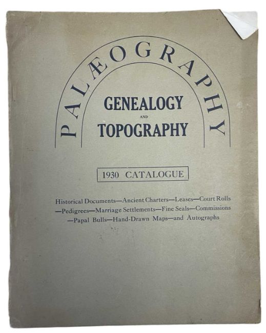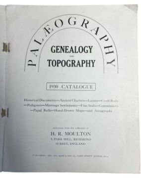 PALAEOGRAPHY: GENEALOGY AND TOPOGRAPHY, 1930 CATALOGUE. Selections from the collection of H R MOULTON. London, Geo. Aug. Mate and Son.