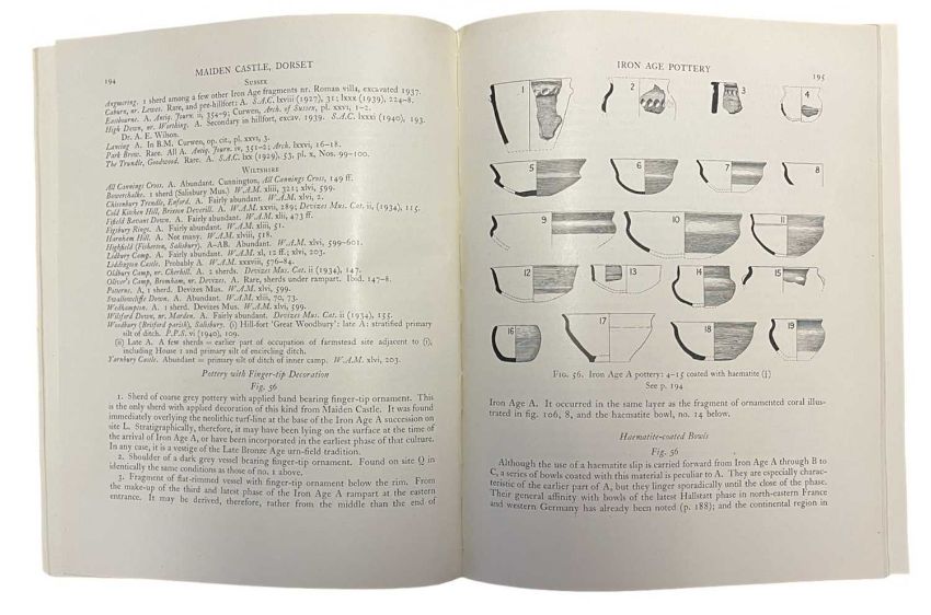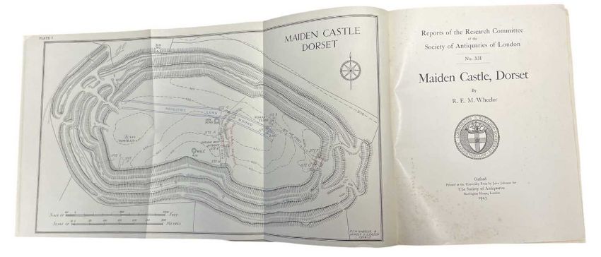 R E M WHEELER: REPORTS OF THE RESEARCH COMMITTEE OF THE SOCIETY OF ANTIQUARIES OF LONDON - NO XII - MAIDEN CASTLE DORSET, Oxford, Printed at the University Press by john Johnson foe The Society of Antiquaries, 1943.