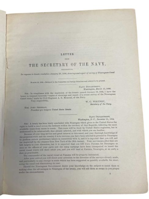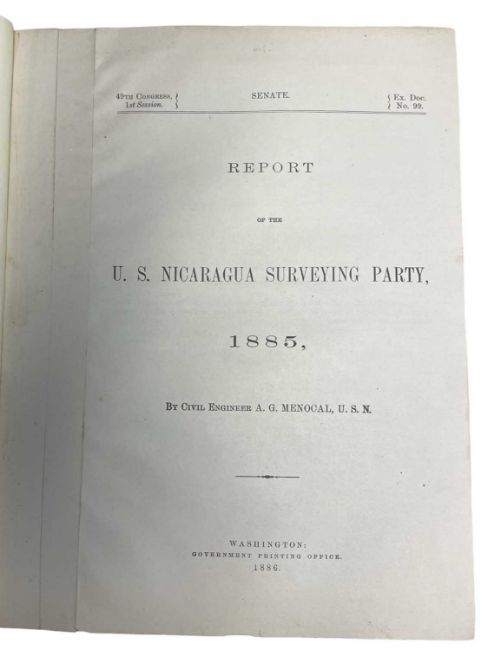 A G MENOCAL: REPORT OF THE US NICARAGUA SURVEYING PARTY 1885, Washington, Government Printing Office, 1886. Bound in contemporary black cloth , comprising many fold-out charts, maps etc and further illustrative plates
