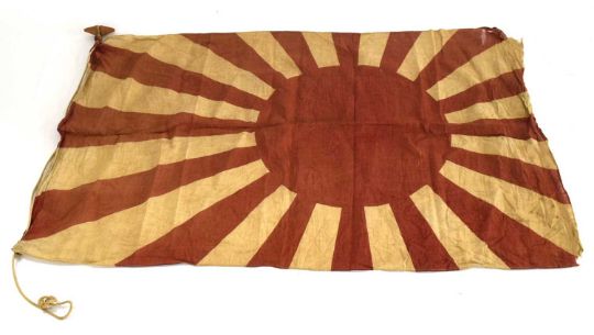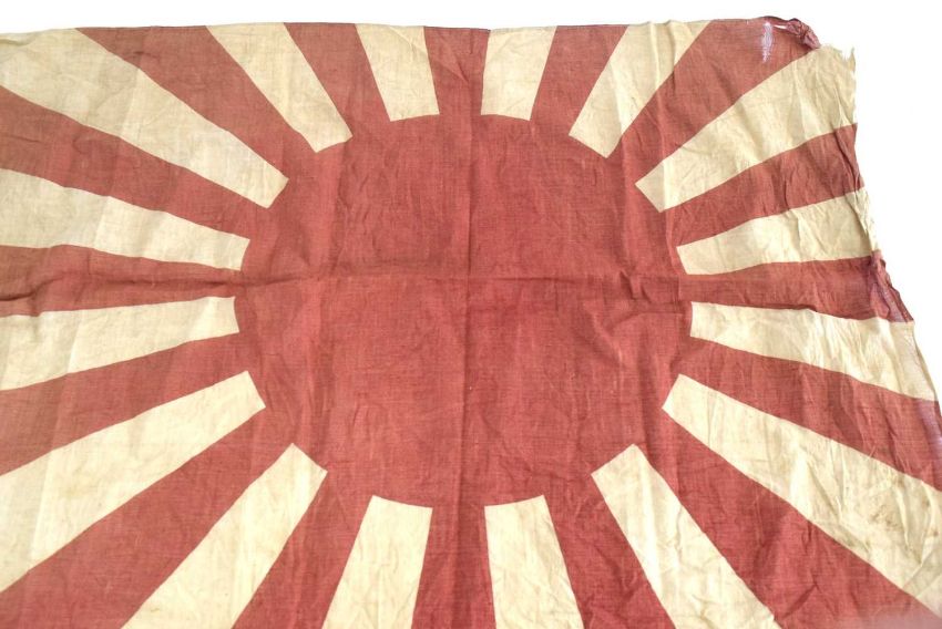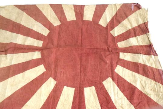 Second World War Imperial Japanese Army Rising Sun (Kyokujitsu-ki) Flag with hand carved wooden toggel, no stamps or makers mark.