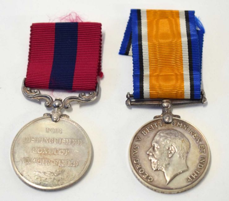 First World War British DCM gallantry medal pair comprising of Distuinguished Conduct Medal and 1914-18 British war medal, impressed to 30746 Sjt Henry George Adams, 100 siege Battery Royal Garrison Artillery.DCM awarded for Conspicuous gallantry and devotion to duty. His London gazette mention states:“In spite of heavy shelling, he kept his gun in action. When on three occasions severely gassed, he led his detachment to his gun in gas masks, remaining in action under shell fire. He retired through a barrage in excellent order with a lorry load of stores and his gun. He acted with uncommon courage."