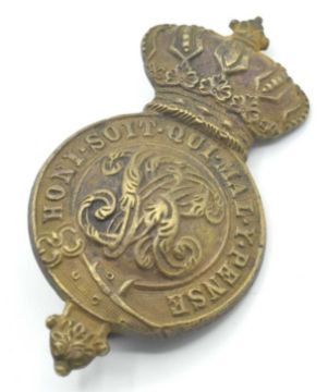 Early Victorian c1860s Household Division leather martingale brass with VR cypher and Honovarian crown