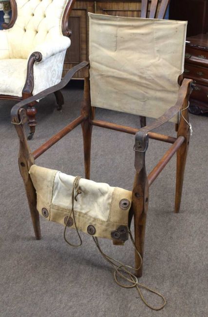 Early 20th Century Roorkhee campaign chair (A/F - Bottom seat Damaged and needs restoration)
