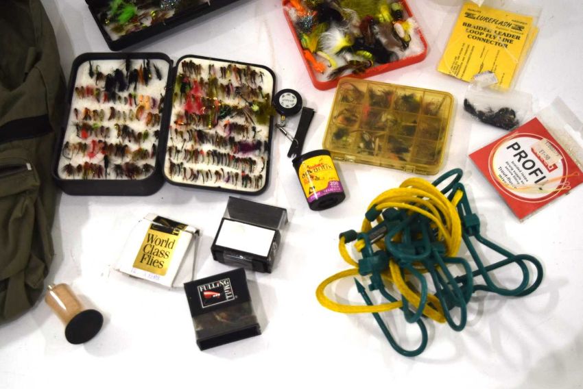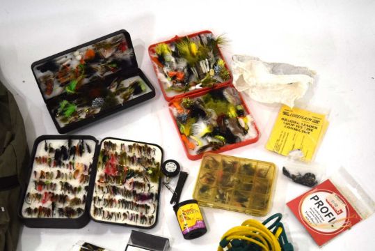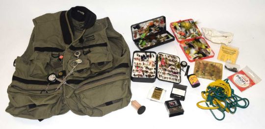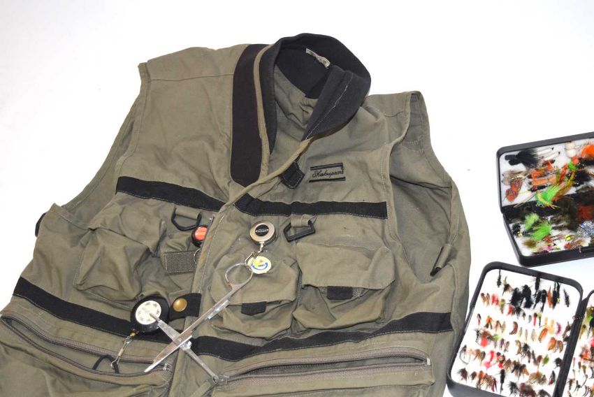 Small box quantity of Mixed Fly fishing Accessories , assorted tackle / Flies, Line etc and Shakespear Fishing Gilet