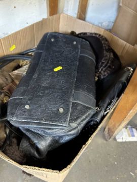 Box containing a quantity of handbags including one with Biba logo and decoration