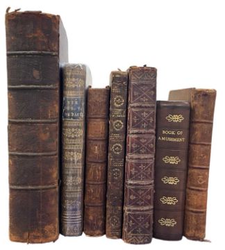 Antiquarian. Including The Book of Common Prayer.. Oxford T. Wright and W. Gill. 1774. 12mo, Regency Morocco [lacking back board]. The Young mans Book of Amusement…. Popular tricks and changes in Cards and the art of making Fire-works. 1844. 24mo, recent full calf, gilt tiles, folding frontis produced in facsimile to the rear. The letters of Junius London. Printed for John Wheble. 1771. Two vol, full calf, engraved devices to the titles. Upper blade of vol 1 attached by one cord only. The banks of Wye by Robert Bloomfield 1811 and two others. [7].