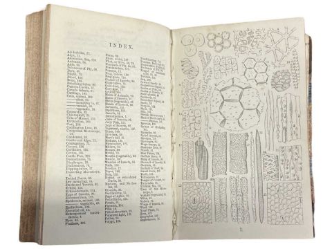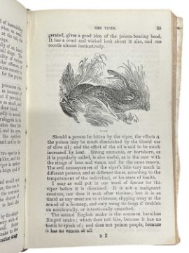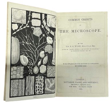 WOOD [Rev. J] 3 Vol in 1.Common Objects of the Microscope 1864. Bound with The Common Objects of the Country [1866] and The Common Objects of The Shore [1866]. Bound in a period half calf binding. 12mo. With frontis and 11 monochrome plates to the first volume. Coloured frontispiece and 11 col plates to the second volume. And coloured frontispiece and 11 col plates to the third. Occasional off-setting, some rubbing, title and frontis to 3rd part detached, some foxing.