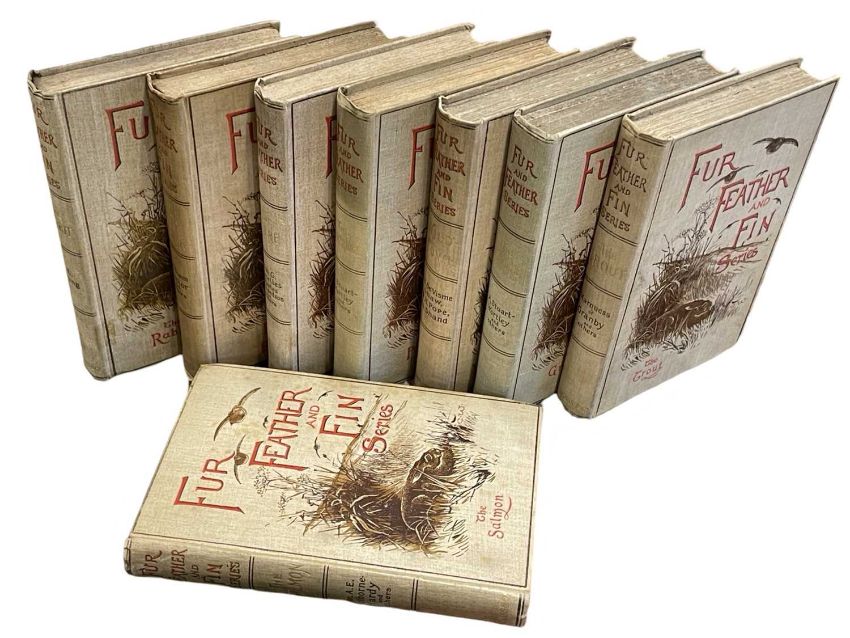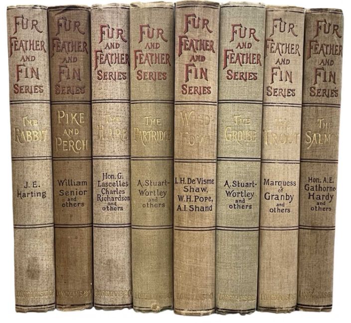 Eight volumes of the Fur and Feather Series. All bound in the original decorative cloth. 1893-1905. 8vo. Illustrated throughout. Titles include; The Salmon, The Trout, The Grouse, Wild Fowl, The Partridge, The Rabbit, The Hare, Pike and Pearch. Some foxing. [8]