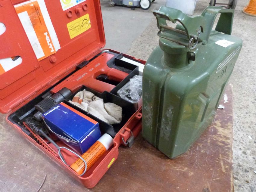 A Hilti DX450 piston tool together with a small fuel can