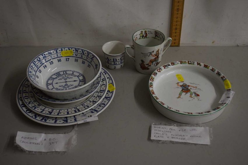 A child's nursery rhyme plate and beaker made by Morley Fox & Co, circa 1920 together with an Admans ABC children's set, plates and bowls