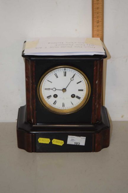 Late 19th Century French slate and marble cased mantel clock with Japy Freres movement