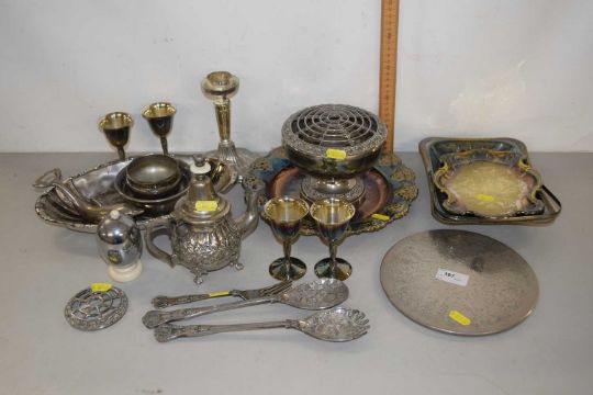 Group of various silver plated wares to include rose bowl, goblets etc