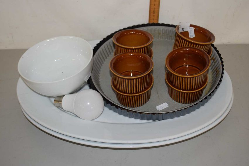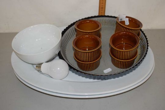 A pair of stone ware kitchen storage jars and other assorted kitchen wares